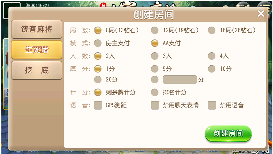 亲友房圈卡完整棋类卡牌源码,创胜系列,新饶客自家人麻将,生死猪,挖底游戏包含有:挖底、饶客麻将、生死猪、 苹果版+安卓版双端APP 精品完整版全套源码