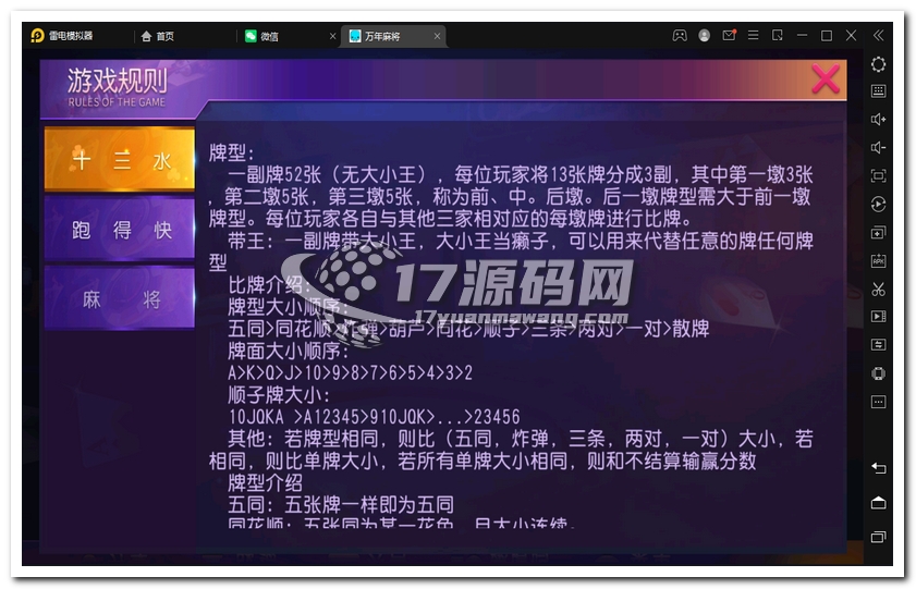 这个端包含三个游戏:万年麻将、跑得快和十三水。所有内容都已打包齐全,但目前仅有安卓端版本。有需要的朋友可以拿去使用。