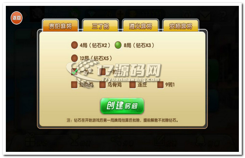 贵阳捉鸡房卡麻将的完整源码,包括手机端、服务器和网站后台。服务端附带内核通信源码,需使用VS 2012进行编译。