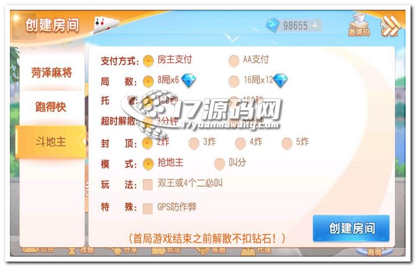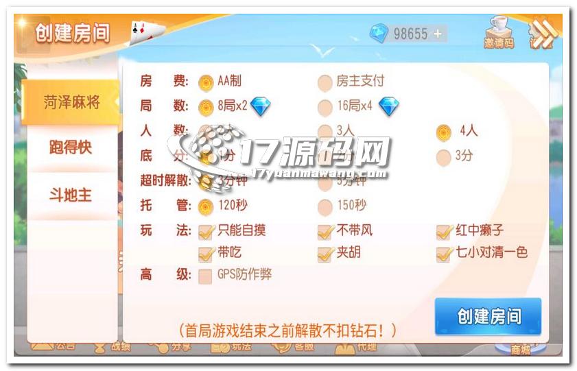 内含菏泽麻将,斗地主,跑的快,菏泽没有控制!