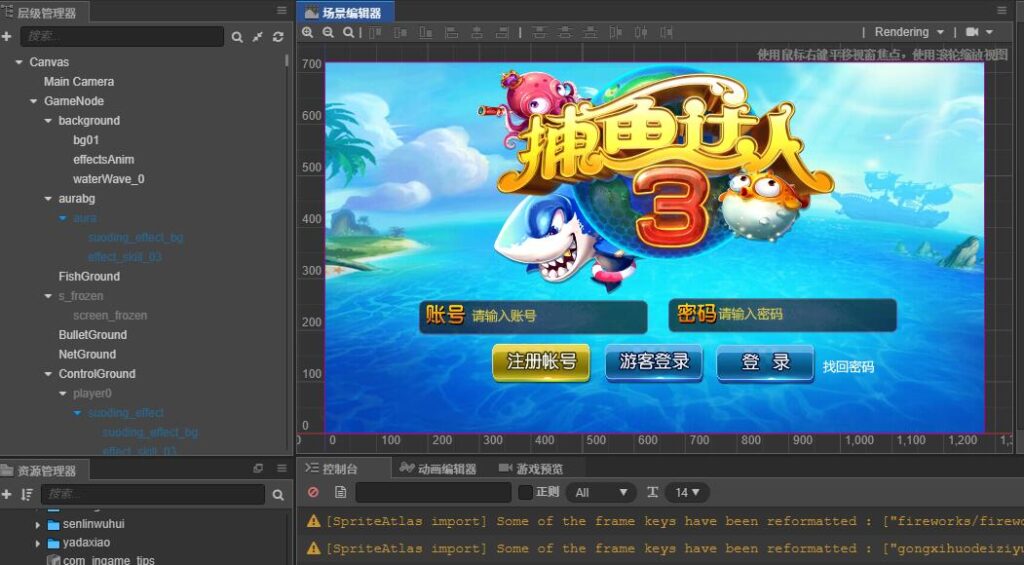 游米系列整体搭建流程保持一致,本版本仅对前端结构进行了调整,改为单款捕鱼组件形式。